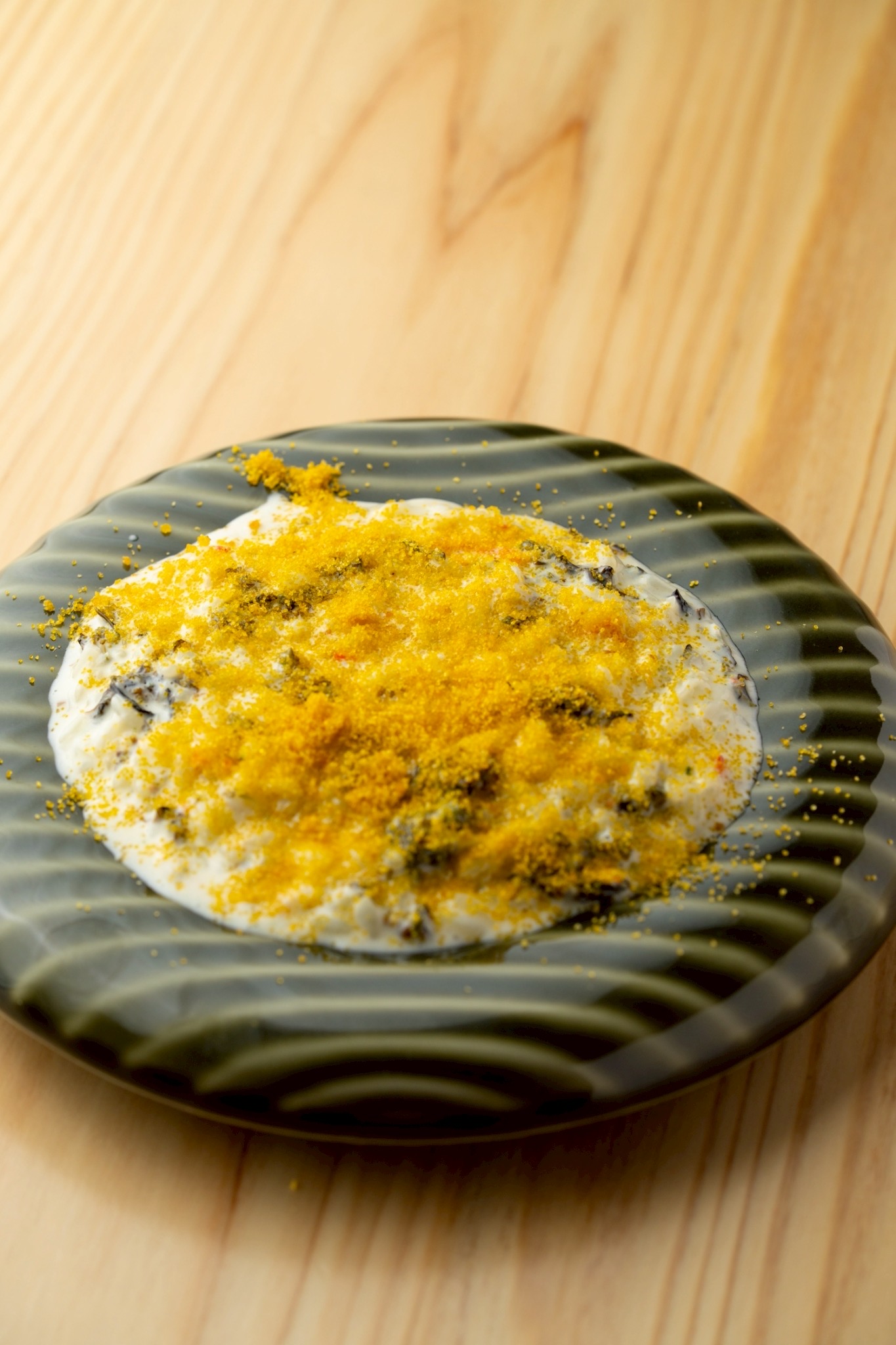 カラスミと岩海苔のリゾット ¥1,680(税込) ビストロ時代から人気のリゾット。カラスミの旨みと岩海苔の香りとクリーミーなリゾットが相性抜群。日本酒ともワインとも合う酒のアテになるリゾット。 サイド だし巻き玉子〜鶏ダシ岩海苔〜 ズワイガニとカニ味噌のリゾット